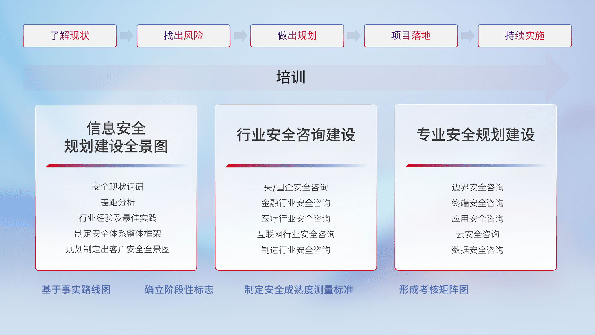 通过专业的法律咨询解读、、合规架构体现、、差异化解决方案、、、、测试实施支持等服务,,,为客户量身打造等保合规体系。。。